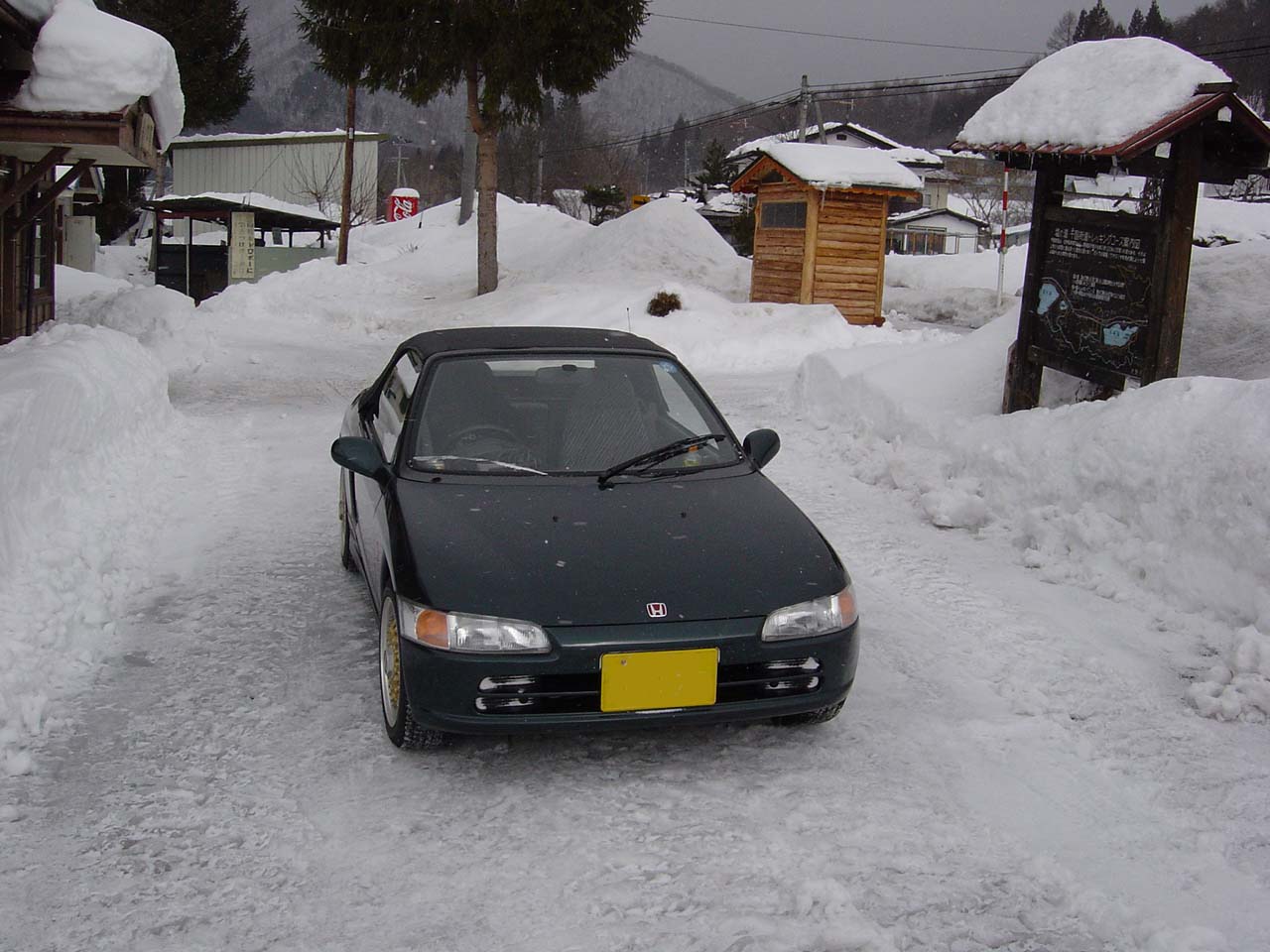 などまったく見えない純白の世界。こちらは車高も低ければミドシップ2WDのホンダ・ビートです。